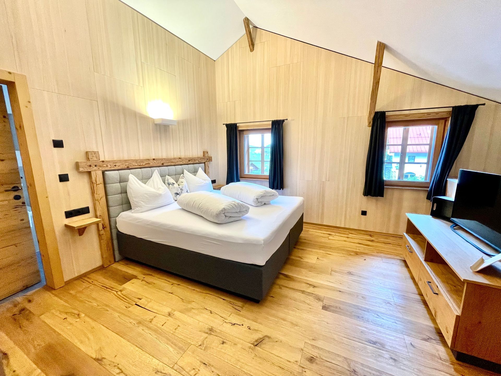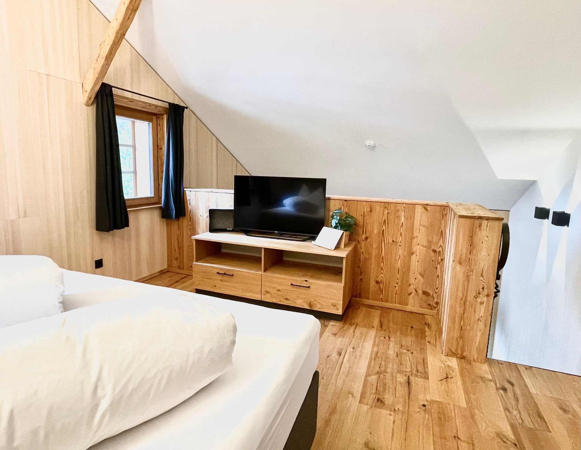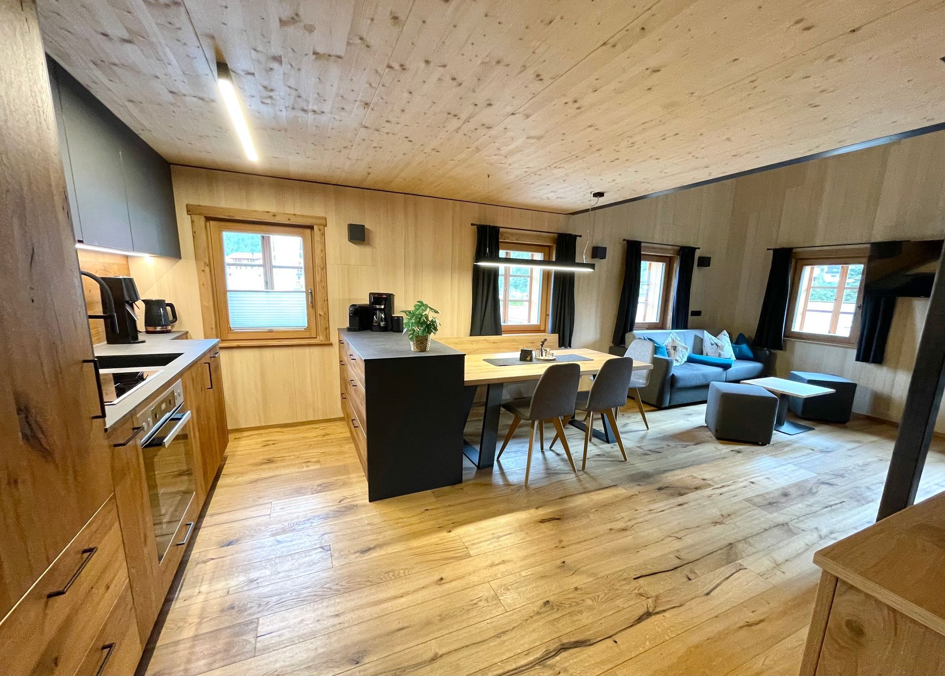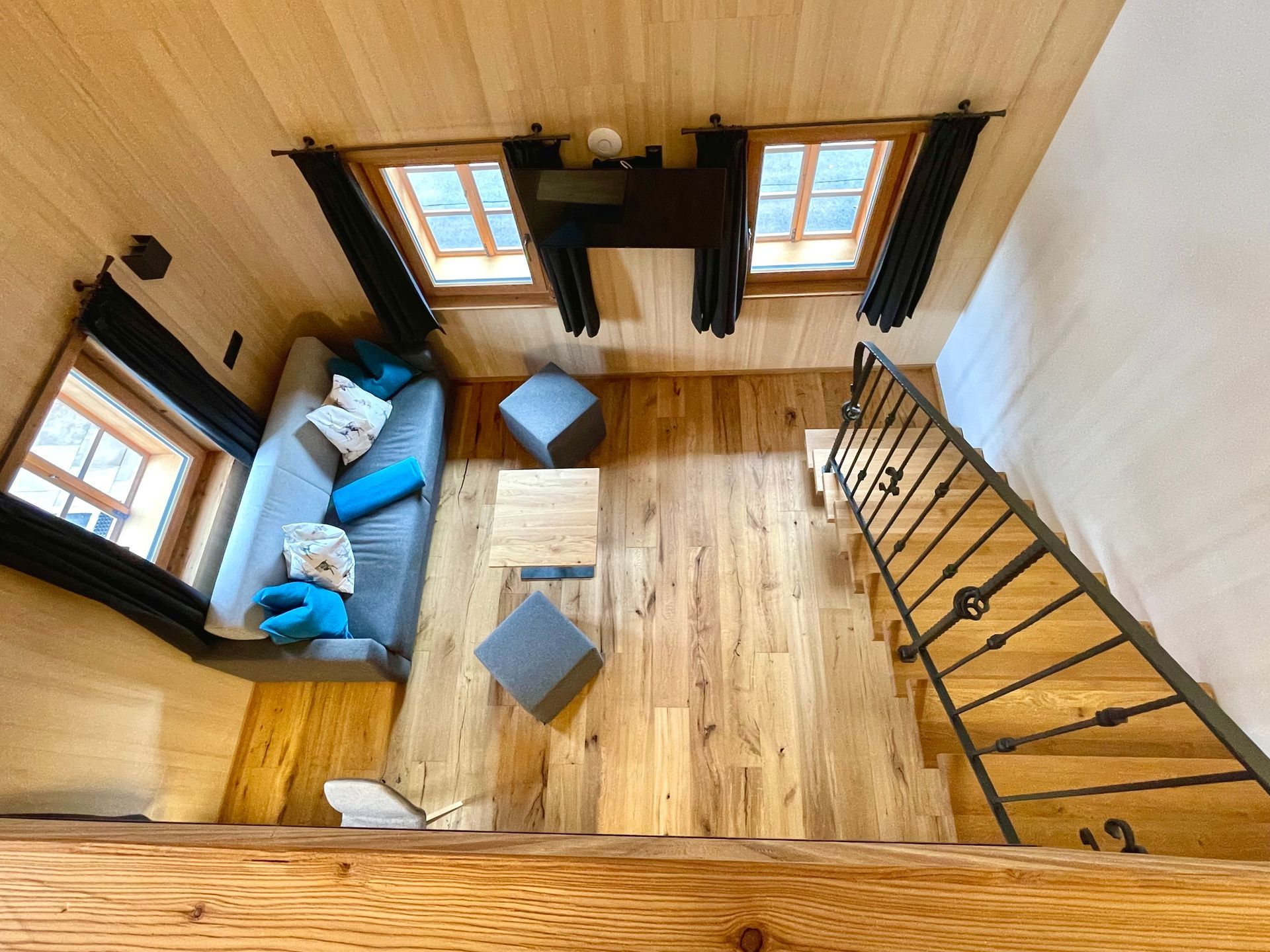 Dieses 75 m² große Appartement erstreckt sich über zwei Stockwerke. Sie finden Sie den Eingangsbereich sowie eine gut ausgestattete Küche inklusive Kochzeile, Küchenutensilien, Kapsel-Kaffeemaschine, Filterkaffeemaschine, Wasserkocher, Sodastream. Der Essbereich bietet eine Sitzbank, drei Stühle und optional einen Kinderhochstuhl, der auf Anfrage verfügbar ist. Im angrenzenden Wohnbereich sorgt eine ausziehbare Couch für zusätzliche Schlafmöglichkeiten für bis zu zwei Personen. Zur technischen Ausstattung gehören kostenloses W-LAN, drei Ultra HD-TV-Flachbildschirm (in jedem Schlafzimmer & Wohnbereich).